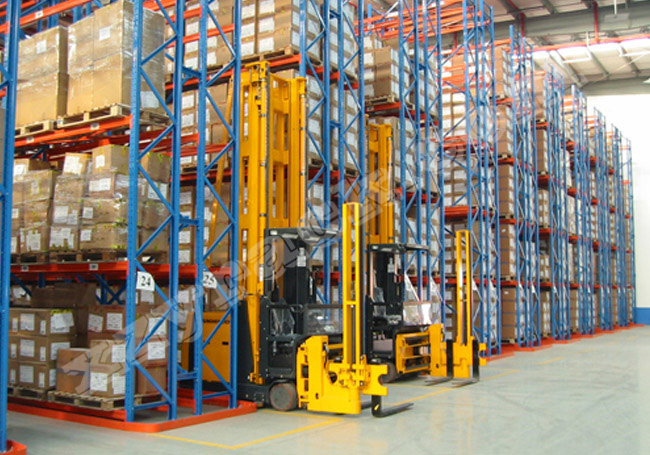 架同為橫梁式貨架,只是系統(tǒng)的其他部分有所區(qū)別,如通道寬度,配合三向叉車貨高位揀選叉車用車等